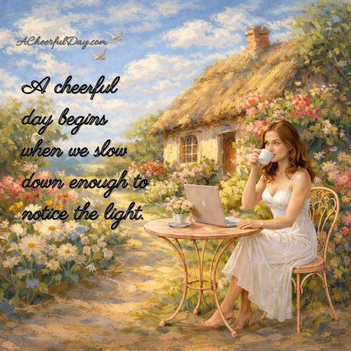 A cheerful day begins when we slow down enough to notice the light. ACheerfulDay.com There’s something quietly powerful about a cheerful day. Not the rushed kind filled with noise and obligation—but the gentle kind that unfolds slowly, wrapped in sunlight and peace. A cheerful day begins when we allow ourselves to notice beauty. It might be the way light dances across a garden path, the comfort of a familiar place, or the calm feeling of knowing you don’t need to hurry anywhere at all. These moments remind us that joy doesn’t always arrive in grand gestures. Often, it shows up softly—waiting for us to slow down enough to receive it. Finding Cheer in the Everyday Cheerfulness isn’t about perfection.It’s about presence. It’s choosing to pause and breathe deeply.It’s letting warmth linger instead of rushing past it.It’s finding comfort in simple surroundings and allowing gratitude to rise naturally. Some days, cheer looks like laughter.Other days, it looks like quiet contentment.Both are equally meaningful. Let This Be Your Reminder As you move through today, let yourself be guided by what feels light, warm, and life-giving. Allow beauty to be enough. Allow calm to be productive. Allow joy to exist without needing a reason. A cheerful day doesn’t demand more from you.It gently invites you to be present. And sometimes, that’s all we need. Thank you for being here.Teresa — ACheerfulDay.com